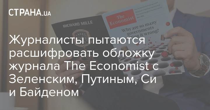 Мировые издания трактуют зашифрованное послание в изображении на обложке спецвыпуска журнала The Economist, где Владимир Зеленский и Владимир Путин смотрят на песочные часы, а Джо Байден и Си Цзиньпин отвернулись друг от друга.