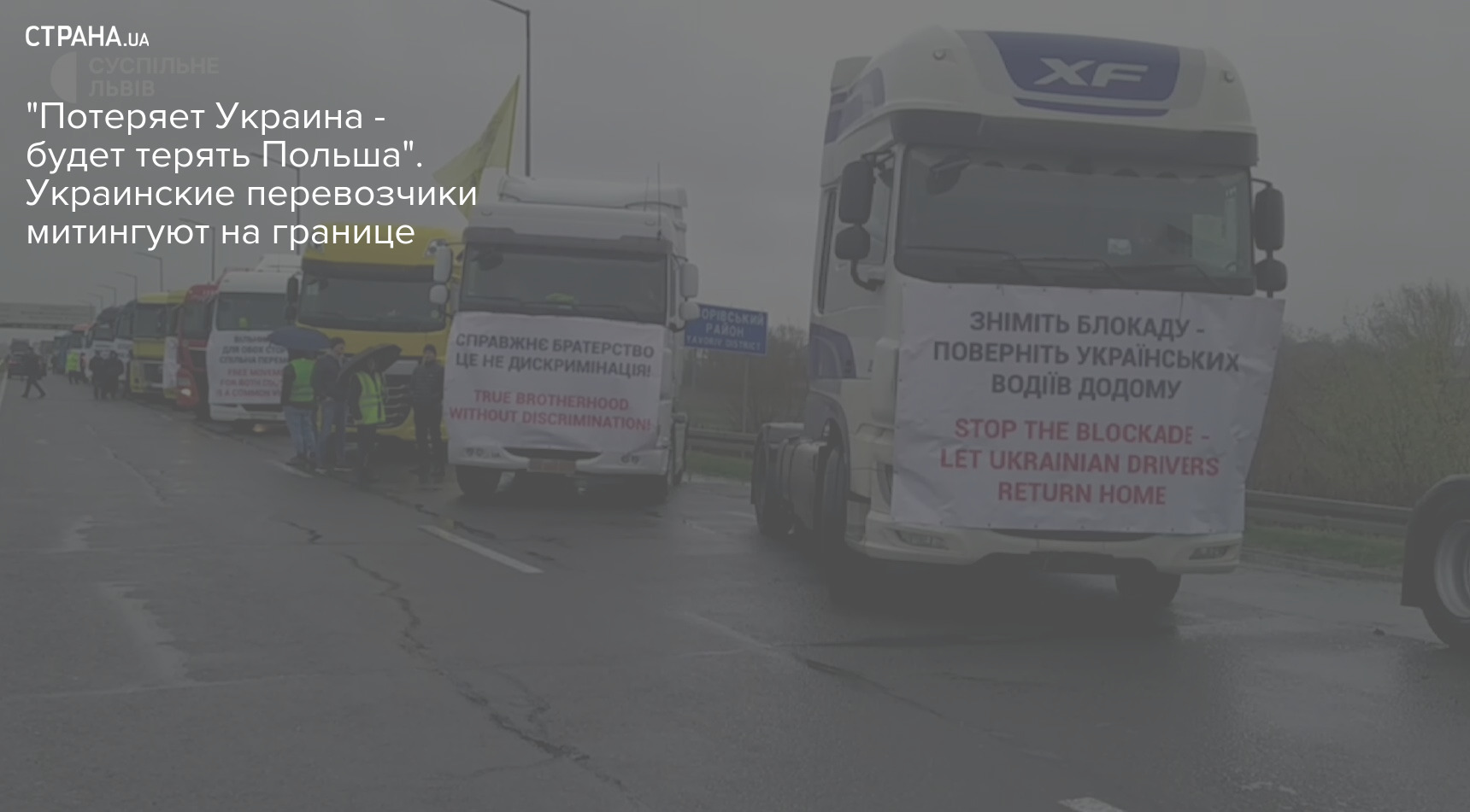 Перевозчики разместили на грузовиках плакаты: "Снимите блокаду - верните украинских водителей домой", "Настоящее братство - это не дискриминация", "Вместе сильнее", а также "Потеряет Украина - будет терять Польша" на украинском и английском языках.
