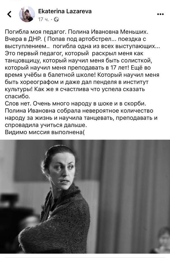 На Донбассе во время выступления в клубе перед российскими военными погибла московская хореограф