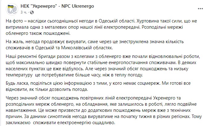 Ремонтные бригады уже начали восстановительные работы, чтобы максимально быстро вернуть стабильное энергоснабжение потребителям. Но из-за значительного объема повреждений и низкой температуры это потребует больше времени, чем в теплую погоду.