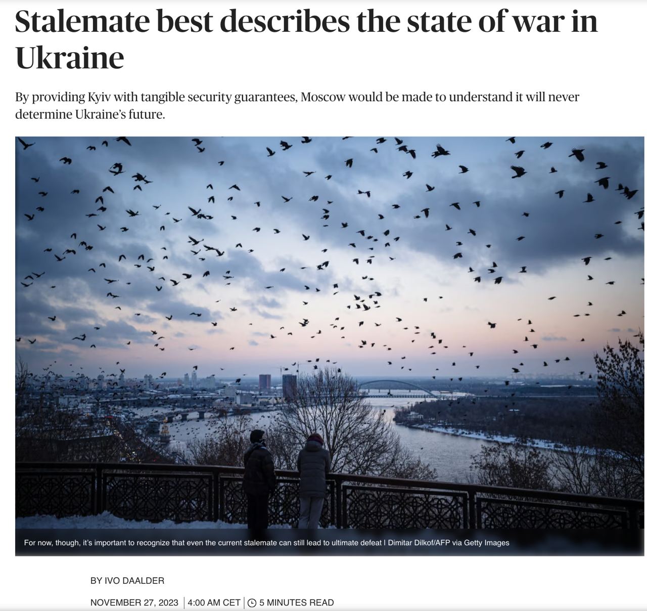 Он призывает Запад сменить фокус с расчета, что Украина отвоюет значительную или всю территорию, на обеспечение ее будущего на Западе. А также стабильных поставок оружия, чтобы ВСУ могли удерживать оборону.