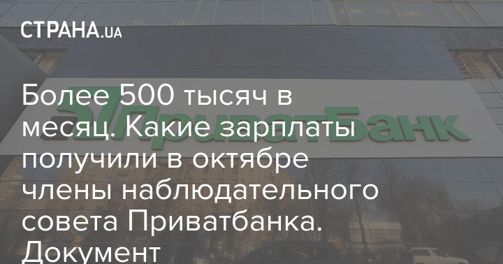 Более 500 тысяч в месяц. Какие зарплаты получили в октябре члены наблюдательного совета Приватбанка. Документ