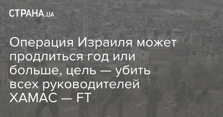 Операция Израиля может продлиться год или больше, цель — убить всех руководителей ХАМАС — FT