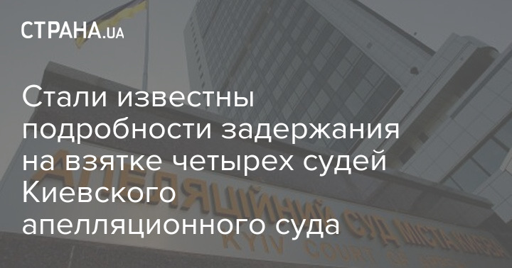 "Стране" стали известны подробности задержания на взятке четырех судей Киевского апелляционного суда (Юрия Сливы, Игоря Паленика, Вячеслава Дзюбина и заместителя председателя Киевского апелляционного суда Виктора Глиняного).