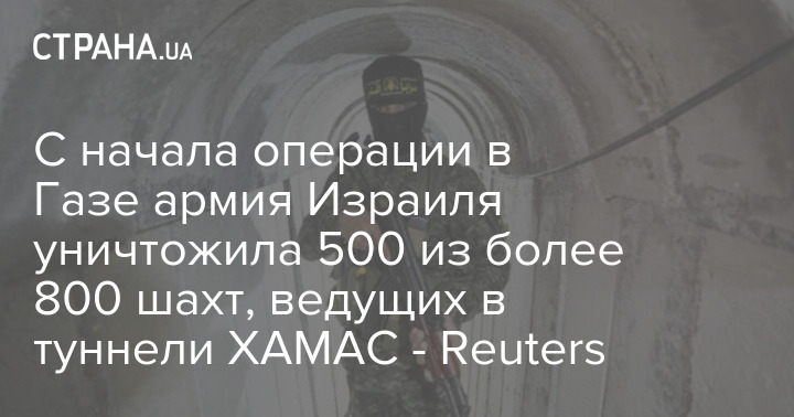 С начала наземной операции в секторе Газа армия Израиля обнаружила более 800 шахт, ведущих в обширную подземную сеть туннелей и бункеров боевиков ХАМАС, и в ходе боев разрушила более половины из них.
