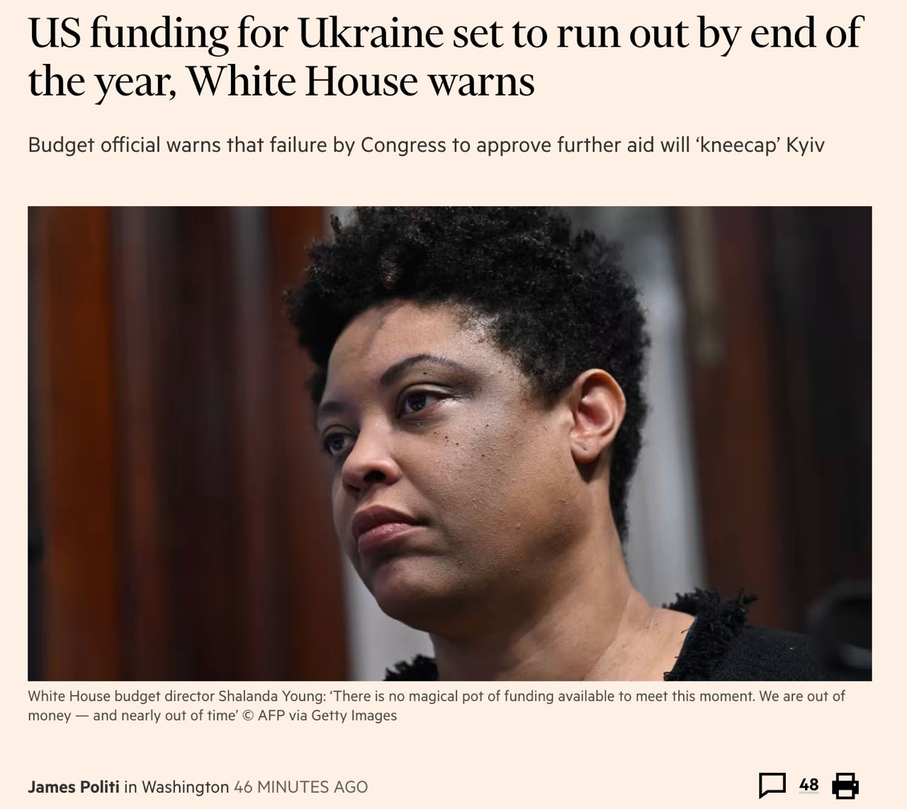 У США до конца года закончатся средства для финансирования Украины, если Конгресс не одобрит новый пакет помощи.
