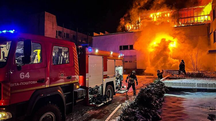 В ночь на 6 декабря под Киевом горел мебельный цех. Пожар тушили всю ночь, к утра удалось его потушить.