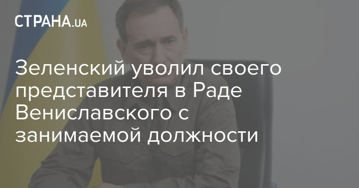 Президент Украины Владимир Зеленский снял народного депутата Федора Вениславского с должности представителя президента в Верховной Раде.