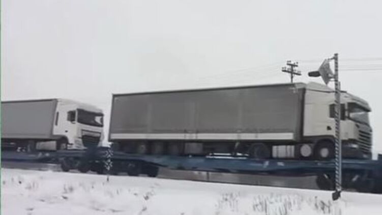 Появилось видео погрузки фур на платформы поезда, который доставит их через польскую границу в Украину.