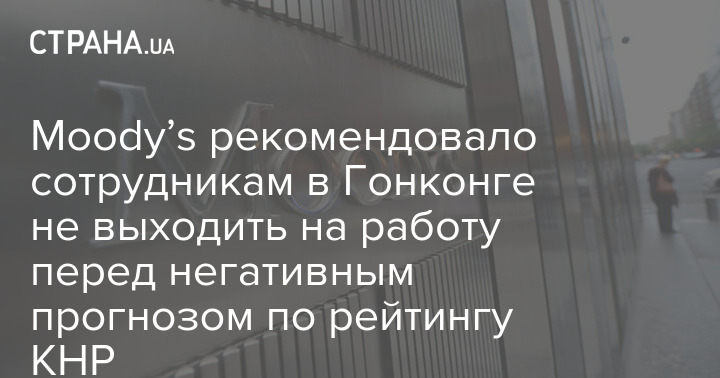 Международное рейтинговое агентство Moody’s рекомендовало своим сотрудникам в Китае не выходить на работу в преддверии понижения прогноза по кредитному рейтингу страны со "стабильного" до "негативного".