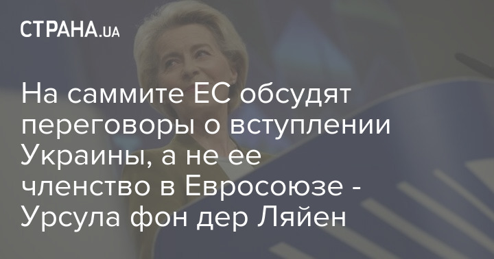 "На саммите Евросовета в четверг и пятницу будет обсуждаться начало переговоров о вступлении, а не само вступление, которое в любом случае требует времени. Конечно же, присоединение Украины к Евросоюзу может состояться только после того, как будут выполнены все условия членства", - сказала фон дер Ляйен.