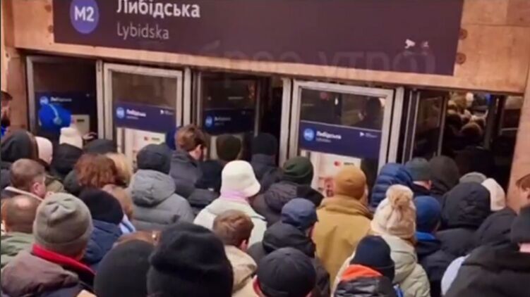 Пробки на станции метро "Лыбедская". Скриншот видео