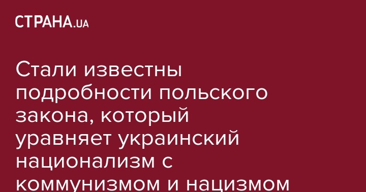 Стали известны подробности польского закона о запрете пропаганды коммунизма, который может приравнять украинский национализм к коммунизму и нацизму. Соответствующие изменения в законопроект опубликованы на сайте Сейма Польши.