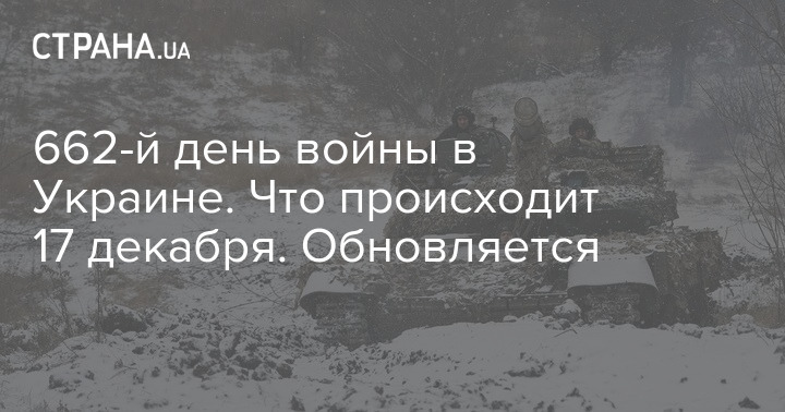 В воскресенье, 17 декабря, в Украине идет 662-й день войны с Россией.