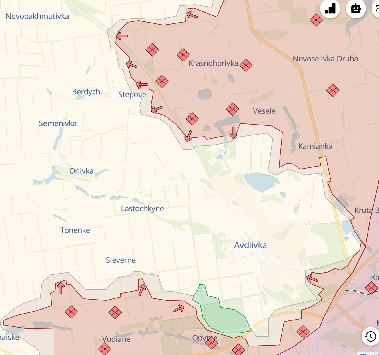 Россияне продвинулись к северу от Степного на Авдеевском направлении. В самом селе они были остановлены, сообщает паблик Deep State. При этом противник занял позиции ВСУ на улицах частного сектора Авдеевки у промзоны.