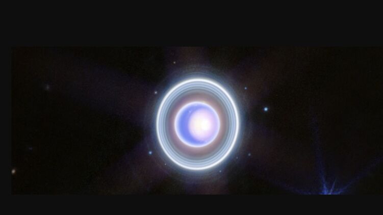 Космический телескоп НАСА "Джеймс Уэбб" сделал снимок Урана и его спутников. На фото заметны слабые пылевые кольца планеты, которые раньше снимали только дважды корабль "Вояджер-2" и обсерватория Кека.