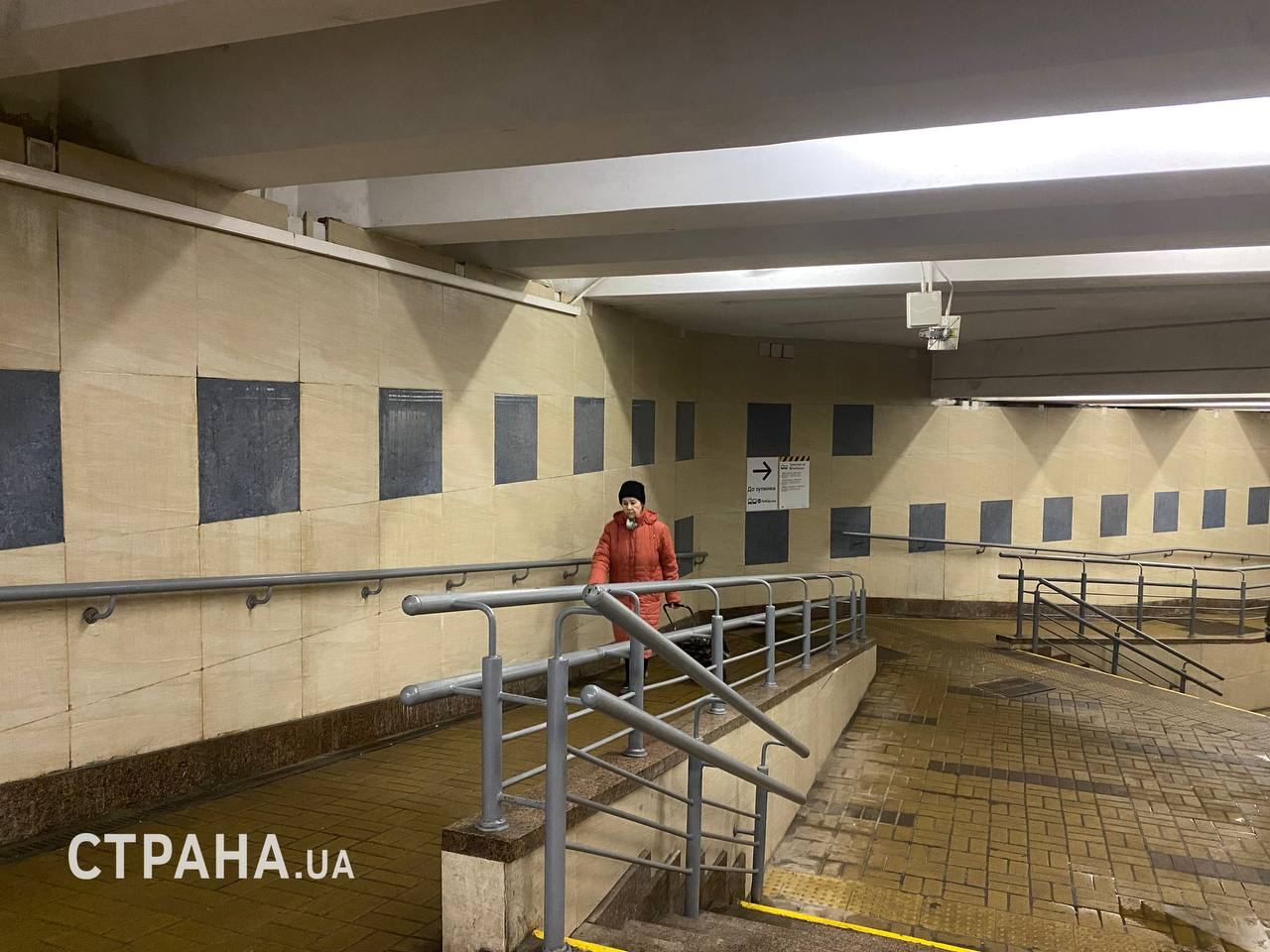 Также сотрудники "Страны" посетили станцию метро "Голосеевская" на закрытой части синей ветки. Вчера в киевских пабликах массово разошлось видео, как из стены между плитками там течет вода. Сегодня дыры, откуда сочилась вода, замазаны цементом, но на фото можно увидеть, что влага уже опять начала просачиваться: по стенам текут мелкие ручейки воды. На потолке отваливается штукатурка.