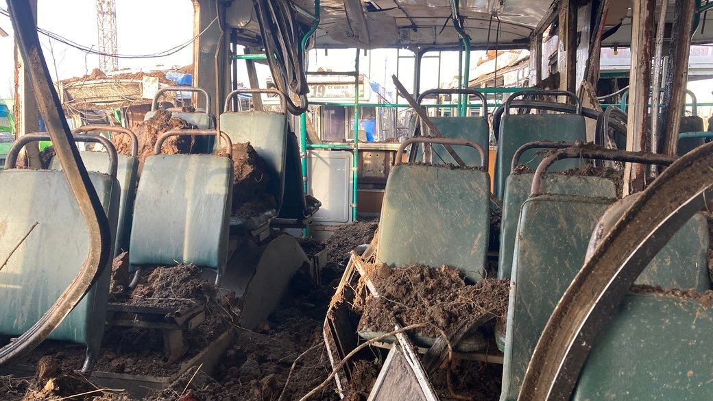 Образовалась огромная воронка. Поврежден общественный транспорт.