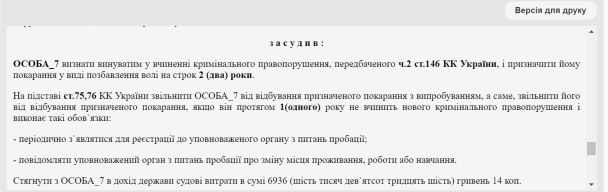 Об этом говорится в приговоре суда Ковеля Волынской области.