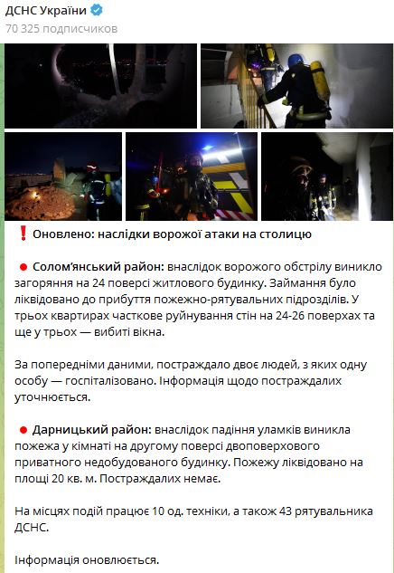 Последствия удара по Киеву. Фото: Telegram/dsns_telegram