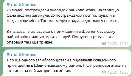 В Киеве уже двое погибших и 28 пострадавших после ракетной атаки.