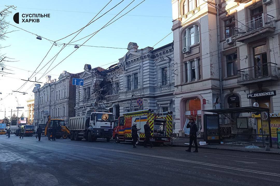 "В результате ночной атаки российских беспилотников на Харьков, повреждения получили здания в центре города.