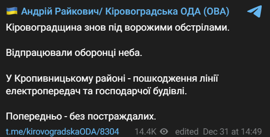 Они же сообщают о полете ракет в направлении Кропивницкого. Где ранее уже были слышны взрывы.