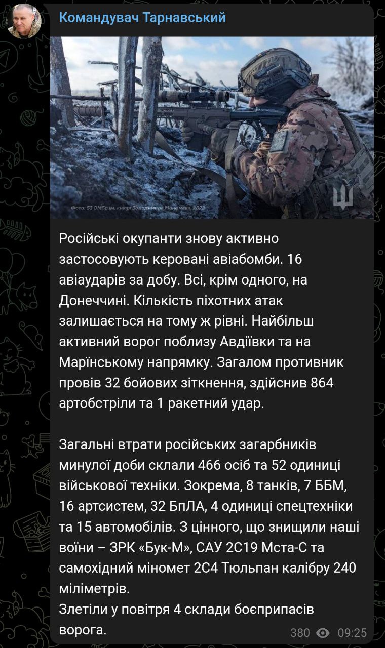 10:30 Россияне снова активно применяют управляемые авиабомбы, заявил командующий группой войск "Таврия" Тарнавский.