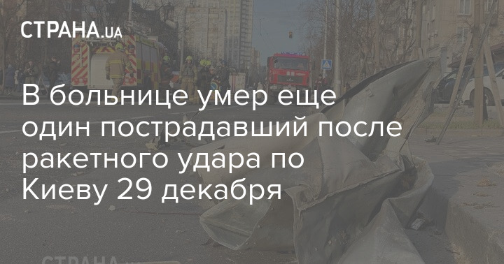 В больнице умер еще один пострадавший после ракетного удара по Киеву 29 декабря