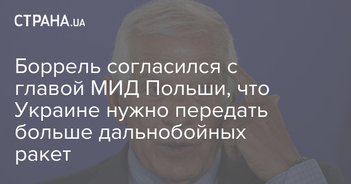 Главный дипломат ЕС Жозеп Боррель согласился с министром иностранных дел Польши, что Украине нужно передать больше дальнобойных и зенитных ракет в ответ на недавние массированные обстрелы.