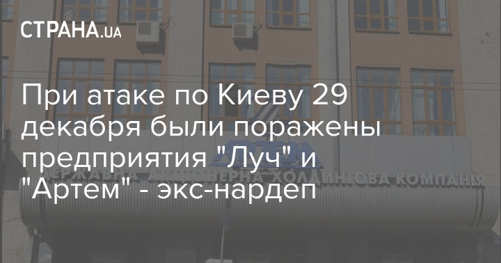 Во время ракетной атаки по Киеву 29 декабря были поражены военные предприятия - государственное КБ "Луч" и завод "Артем", погибли их работники. А во время атаки 2 января в Киеве были атакованы завод по производству электротехники "Квазар", ремонтный завод военной техники и завод "Маяк".