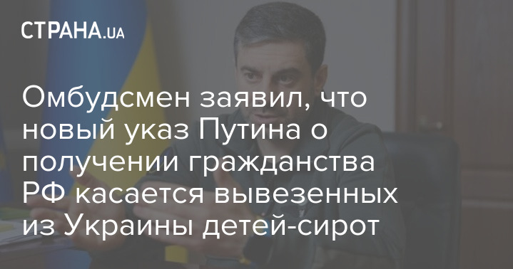 "...В указе отмечается, что дети-сироты и дети, оставшиеся без родительской опеки, являющиеся гражданами Украины, могут получить гражданство РФ по личному решению Путина... Заявление о вступлении в такое гражданство могут подать руководители российских организаций, в которой устроен ребенок", – объяснил Лубинец.