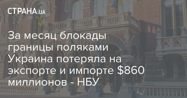 За месяц польской блокировки границы Украина потеряла на экспорте и импорте 860 миллионов долларов.