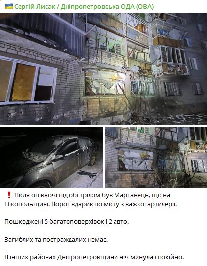 07.32 После полуночи россияне ударили из артиллерии по Марганцу Днепропетровской области.