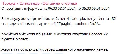 08.07 За минувшие сутки в Херсонской области силы РФ совершили 41 обстрел, выпустив 182 снаряда из минометов, артиллерии, "Градов", танков и БпЛА.