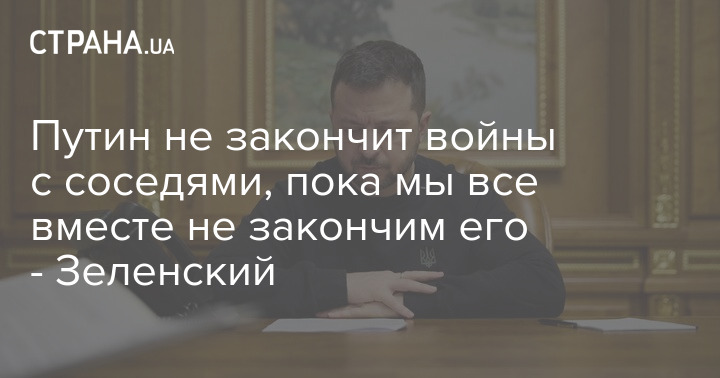 Президент Украины Владимир Зеленский заявил, что Путин не закончит войны с соседями, "пока мы все вместе не закончим его".