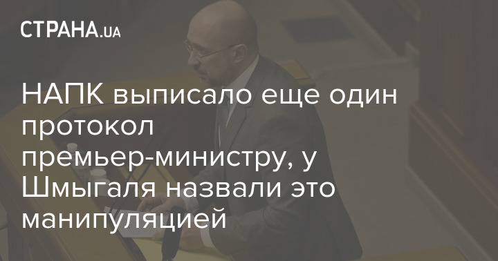 Национальное агентство по вопросам предотвращения коррупции (НАПК) выписало еще один протокол премьер-министру Денису Шмыгалю.