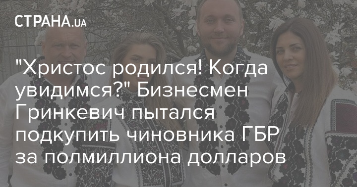 "Христос родился! Когда увидимся?" Бизнесмен Гринкевич пытался подкупить чиновника ГБР за полмиллиона долларов