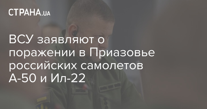 Главком ВСУ Валерий Залужный сообщил, что Воздушные силы уничтожили российский самолет дальнего радиолокационного обнаружения А-50 и воздушный пункт управления Ил-22 над Азовским морем.