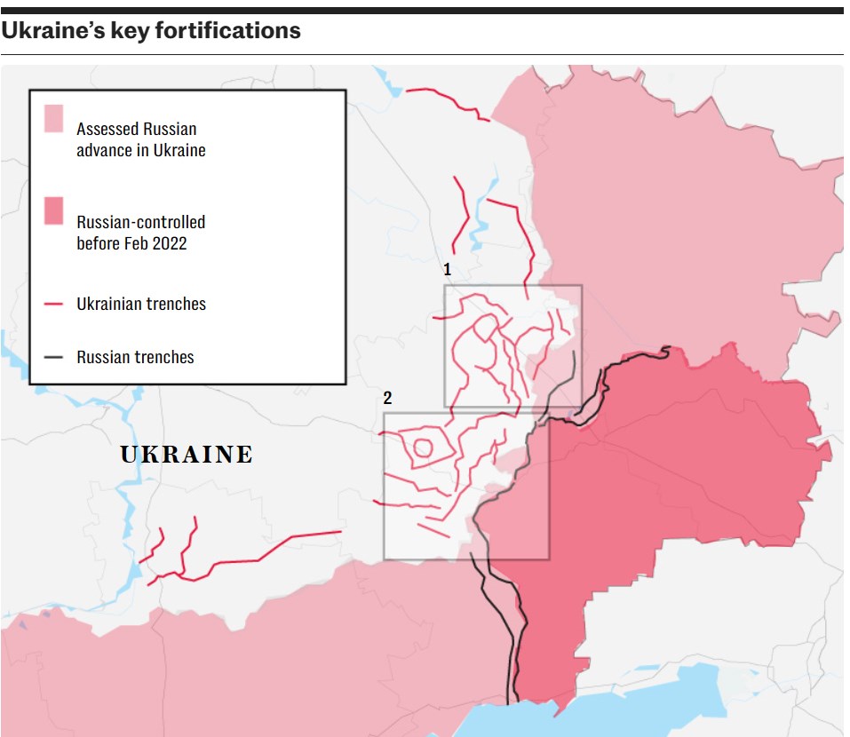 Еще одна линия - в городе Покровске, "который России необходимо захватить, чтобы выполнить свою задачу по захвату всей Донецкой области". Покровск защищен двухуровневой системой траншей, проходящей по всему городу.