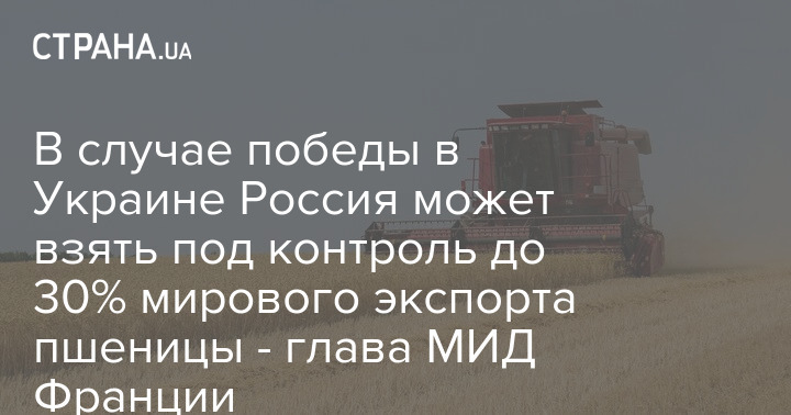 В случае победы в Украине Россия может взять под контроль до 30% мирового экспорта пшеницы - глава МИД Франции