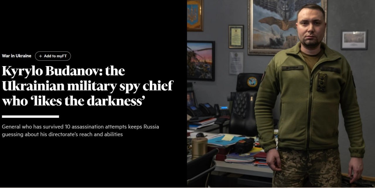 "Буданов утверждает, что регулярно видит по телевидению "клонов" Путина. Отвечая на вопрос о доказательствах, Буданов сказал, что его аналитики изучают "физиономию" Путина, мочки ушей, расстояние между бровями и так далее", - пишет FT.