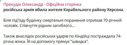 Российские войска обстреляли Днепровский и Корабельный район Херсона. У подъезда дома погиб 70-летний мужчина.