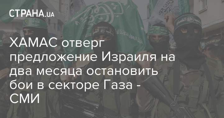 ХАМАС отклонил предложение Израиля о прекращении боевых действий в секторе Газа на два месяца в обмен на освобождение всех заложников.