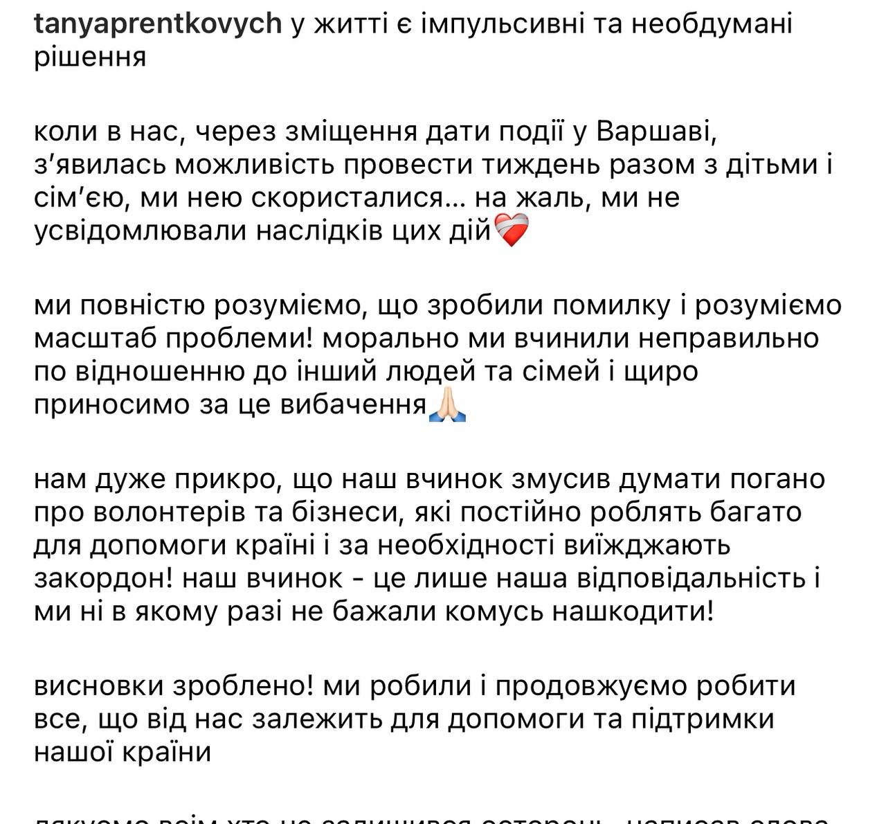 "Мы полностью понимаем, что совершили ошибку и понимаем масштаб проблемы. Морально мы поступили неправильно по отношению к другим людям и семьям и искренне просим за это прощения", — написала Пренткович.
