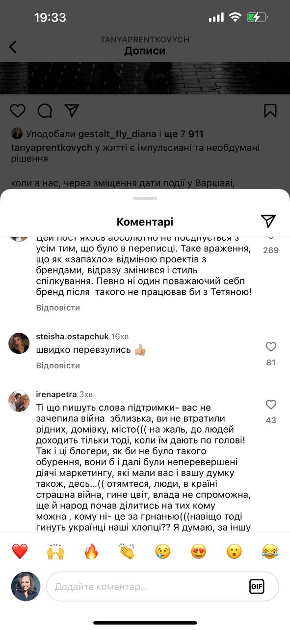 Пользователи не поверили в искренность блогерши. Фото: Instagram/tanyaprentkovych