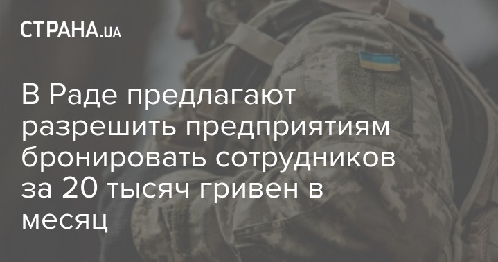 В Верховной Раде предлагают разрешить всем предприятиям бронировать своих сотрудников за ежемесячный платеж - 20 тысяч гривен за человека.