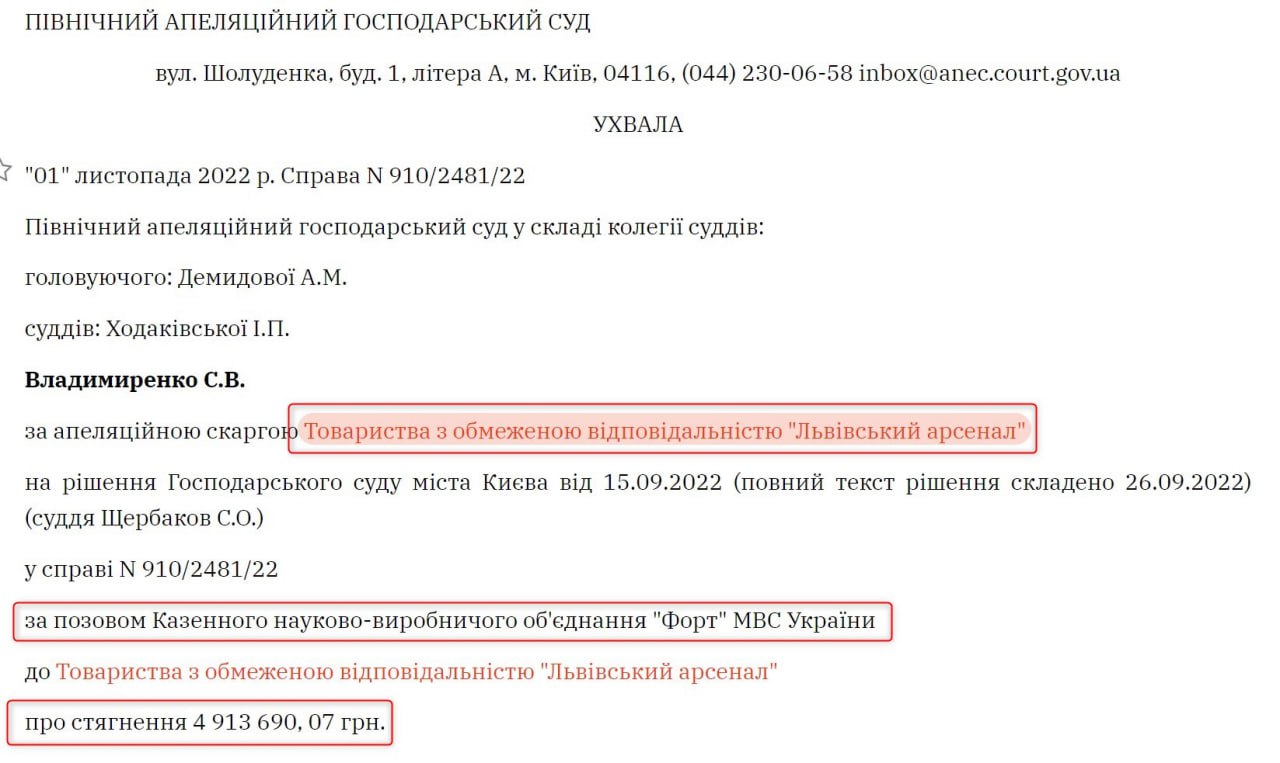 Однако, судя по всему, связи у фирмы Збитнева выходили за пределы Минобороны - она несколько лет назад получила тендер у подконтрольного МВД производителя стрелкового оружия "Форт", но сорвала контракт и вплоть до 2022 года судилась за пять миллионов гривен.