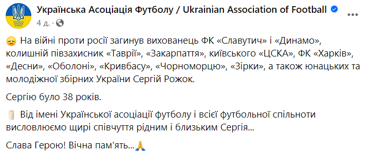 На войне с РФ погиб футболист Сергей Рожок. Ему было 38 лет.