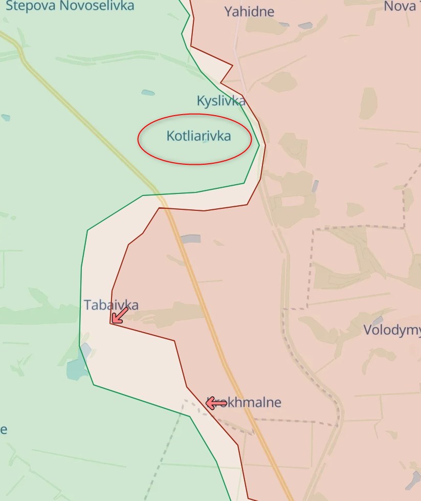 Ближайшая тактическая цель РФ - прорвать оборону украинских войск севернее Табаевки и продвинуться к селу Степная Новоселовка с юга. Что создаст угрозу окружения "Котляровского выступа".